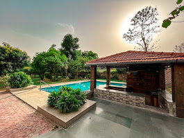 Elegantly rustic, visually stunning, grand yet intimate – Simbliss Farm at Manesar (Gurgaon) is a luxury farmhouse with a private pool near Delhi NCR– whisking you away to a different time, and an all but forgotten lifestyle of quiet elegance amidst beautiful surroundings. It’s about 45 minutes away from Gurgaon and is one of the top-rated farmhouses near Delhi NCR on Airbnb. A perfect place for weekend getaways, only thirty minutes from Gurgaon. The villa has a beautiful central courtyard with surrounding rooms, a swimming pool with a bar deck, a gazebo, and BBQ pits - a perfect place for families or a group of friends. farmhouse in Gurgaon, best farmhouse in gurgaon, luxury farmhouse in gurgaon
